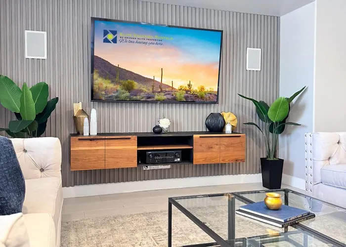 Esta villa se encuentra a una distancia de 7 km del Queen Creek Olive Mill. Los huéspedes pueden disfrutar de la proximidad Las Colinas Golf Club, que está a unos 30 minutos a pie. Situada a una distancia de 2 km del Sun Valley Community Church, esta casa de vacaciones es uno de los destinos favoritos de fieles y turistas.